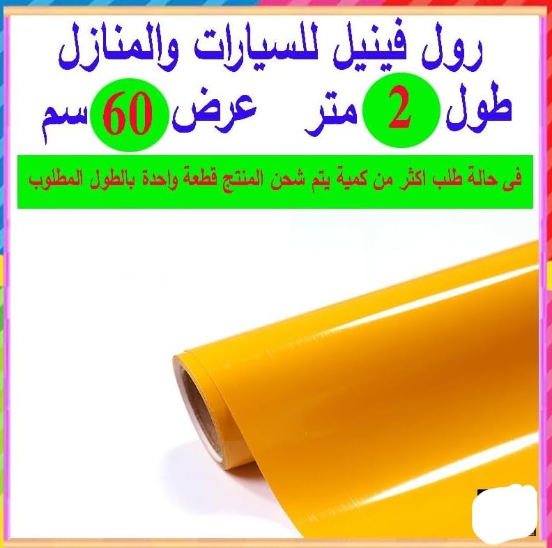 Generic - بكرة فينيل ذاتى اللصق ، مناسب للسيارات والمطبخ والنوافذ و الاجهزة متعدد الاغراض ( اصفرعباد الشمس لامع ، مقاس 2 متر عرض 60 سم ) ---- من نسمه ستور