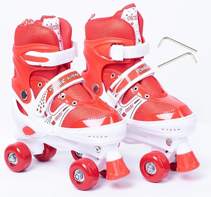 Generic - حذاء تزلج بـ 4 عجلات، أحمر، مقاس سمول 31 إلى 34
