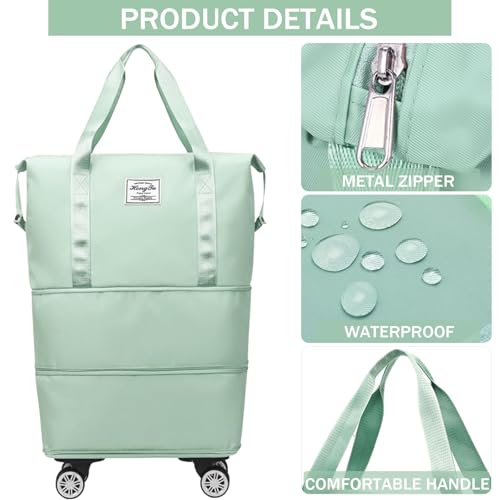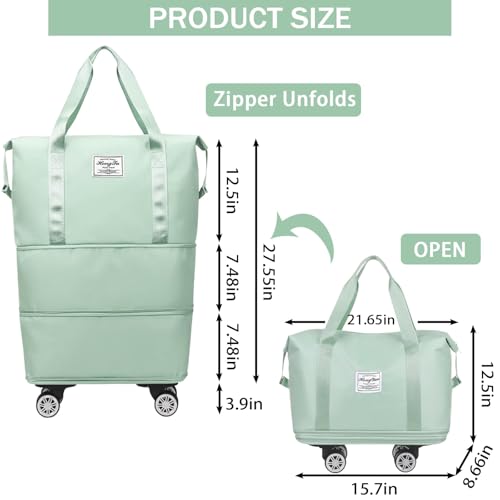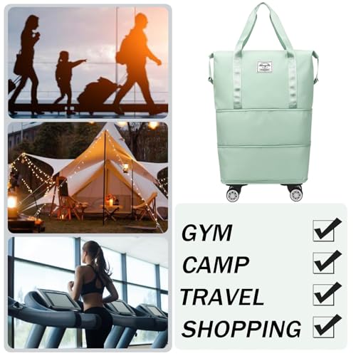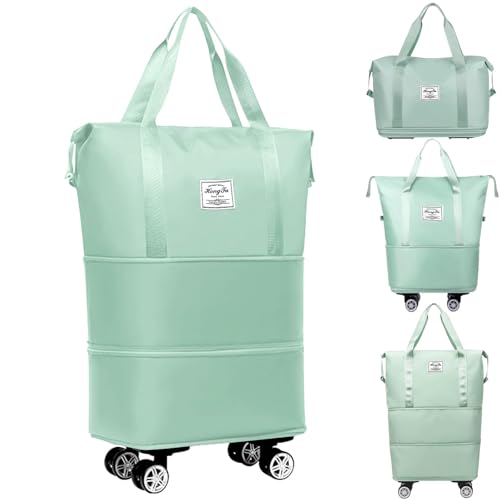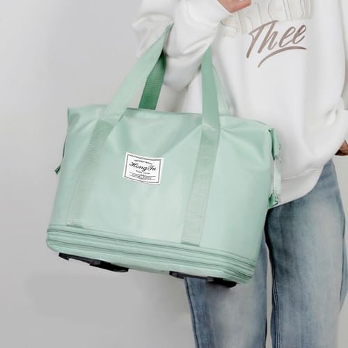 Generic - شنطة دفل كبيرة بعجلات، قابلة للتوسيع والطي لعطلة نهاية الأسبوع (أخضر)