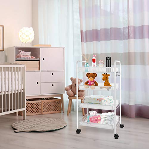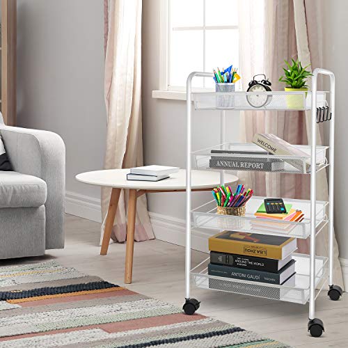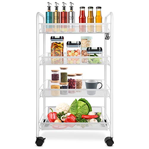 Sorfity - عربة دوارة معدنية بعجلات متحركة عربة متحركة بها 4 ارفف اسلاك فولاذية وعجلات سهلة الانزلاق، شبكة تخزين قابلة للانزلاق، رف تخزين للبرج ارفف تخزين للمنزل والمطبخ والحمام