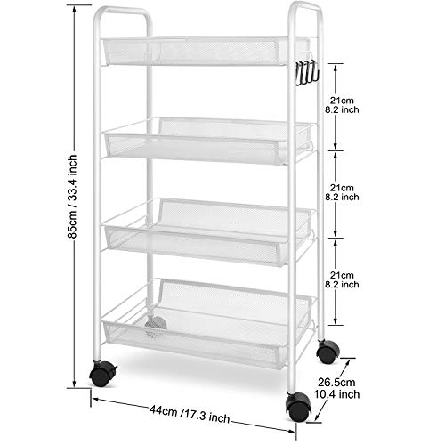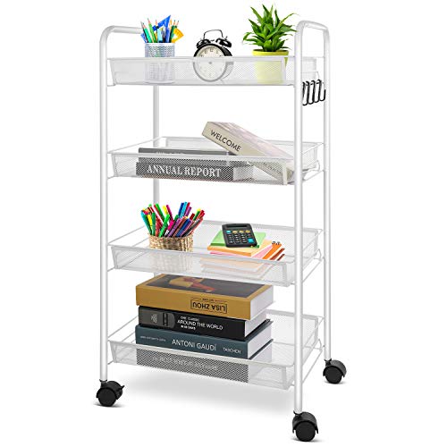 - تنظيم واسع من 4 طبقات: 4 سلال شبكية مع حمولة ثابتة تصل إلى 22 رطل لكل منها، وتوفر 4 خطافات جانبية معلقة مساحة لعدد كبير من المنتجات لتحسين استخدام المساحة؛ تجعل العجلات الدوارة من السهل تحريك منظم التخزين هذا.