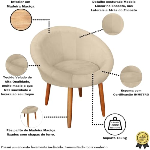 MOBLAN DECOR - كرسي روما للاستقبال وغرفة المعيشة وغرفة القراءة مصنوع من قماش مقوى متين واقدام مخملية لديكور الخشب من موبلان (1، بيج)