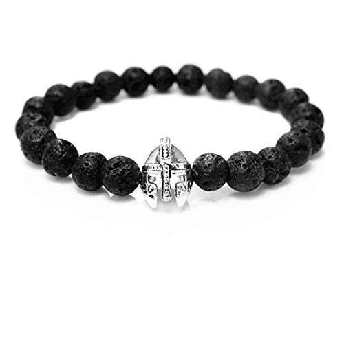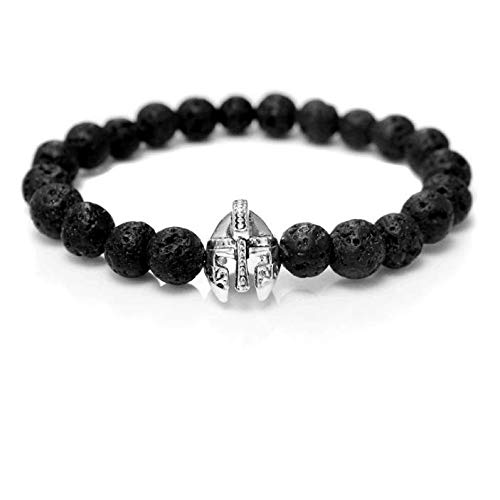 generic - سوار للرجال من رومان نايت سبارتن واريور جلادياتور بتصميم خوذة للرجال من الاحجار الاسود، اساور خرز لافا للرجال
