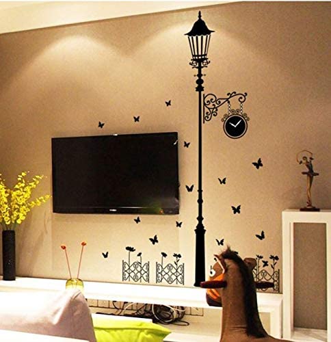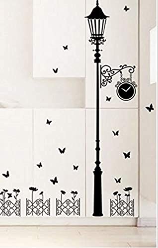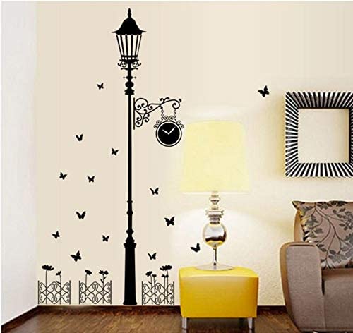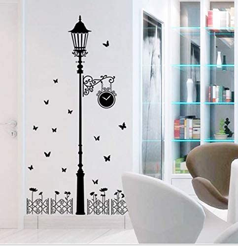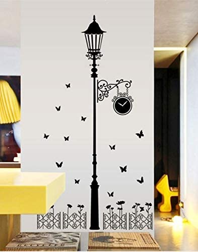 Other - ملصقات الحائط مصباح الشارع ضوء فراشة ساعة رومانسية، بولي فينيل كلوريد، رقمي، اوف وايت