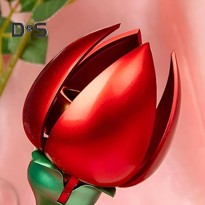 - صندوق المجوهرات هذا صغير الحجم وساحر وسهل الحمل ورقيق بما يكفي لمفاجأة شخص مميز، بينما يضيف شكل الوردة إحساسًا سحريًا بالترقب والبهجة في اللحظة المثالية.