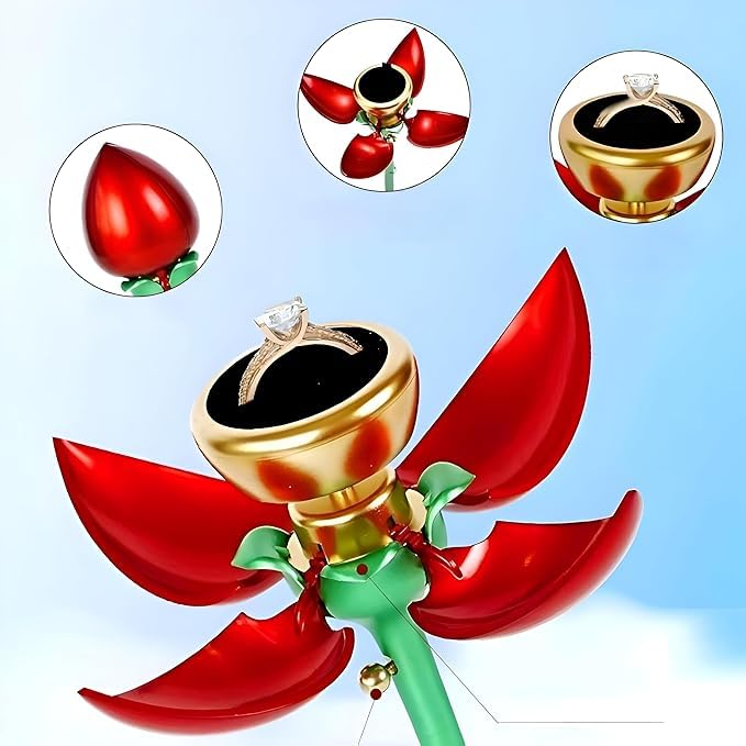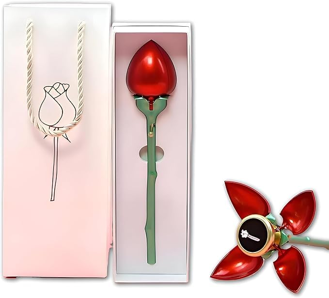 Generic - علبة خاتم مجوهرات على شكل وردة حمراء رومانسية مثالية لعروض الزواج والخطوبة وحفلات الزفاف أو مفاجآت يوم الحب تقدم جمال وسحر لتجربة هدية خالدة.