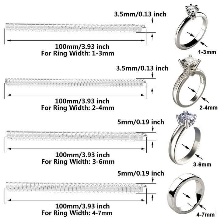 ROMAXO - مجموعة ادوات ضبط مقاس الخواتم الفضفاضة من روماكسو مكونة من 12 قطعة من واقيات سيليكون غير مرئية قابلة للتعديل، فاصل، حامل خواتم مشدود للنساء والرجال، جميع الاحجام، سيليكون