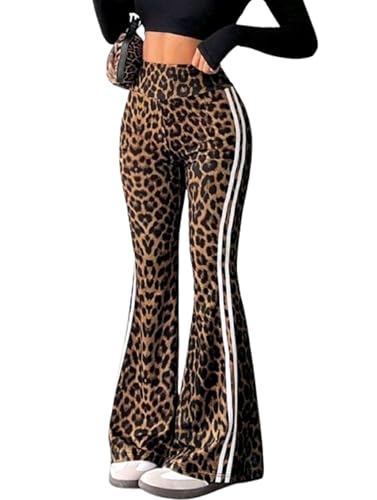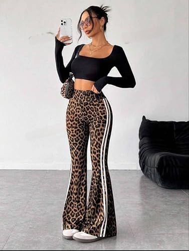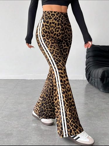 ROMBA SPORT - بنطلون نسائي واسع بستايل مطبوع بنقشة جلد النمر مع خطوط جانبية، مثالي للأناقة والراحة -بنطلون خصر عالى وايد ليج شارلستون تايجر من رومبا