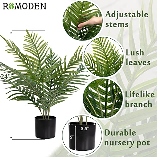 ROMODEN - شجرة نخلة أريكا صناعية بطول 66 سم من رومودين، شجرة استوائية صناعية لديكور المنزل وتصلح للأماكن المغلقة والمفتوحة، نبات نخيل كينتيا من الحرير الصناعي في إصيص للمكتب الحديث وغرفة المعيشة، هدية لزينة