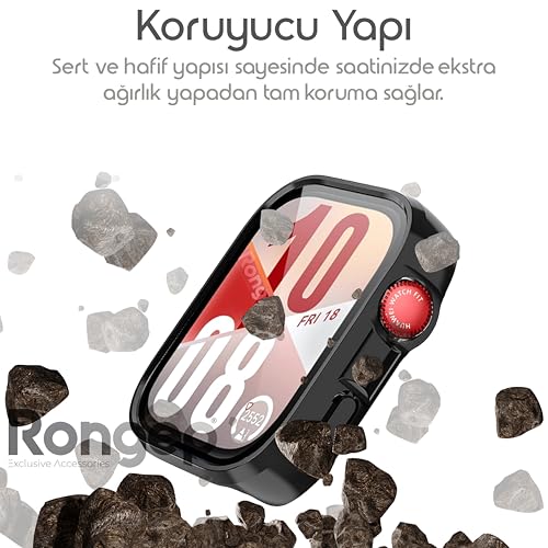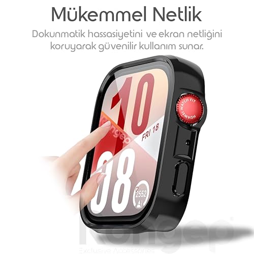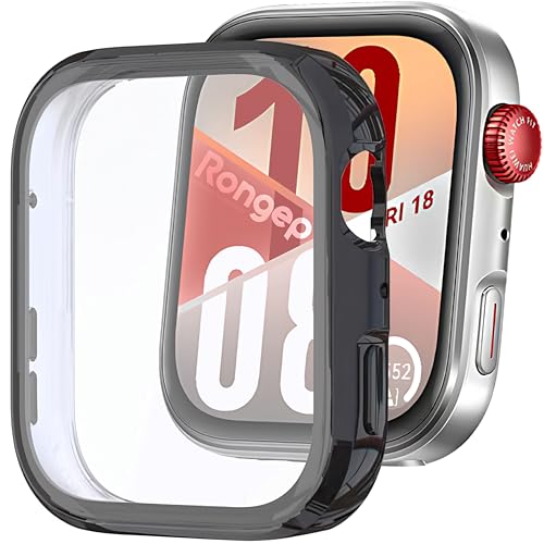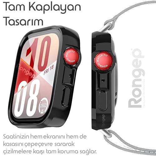 Rongep - جراب حماية 360 درجة من رونجيب لساعة هواوي فيت 4 مع شاشة حماية ناعمة من البولي يوريثين الحراري بقبضة كاملة اللمس، واقي سيليكون محيطي ممتص للصدمات (اسود)