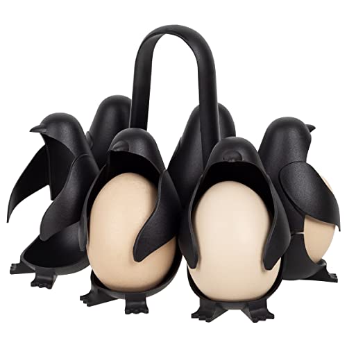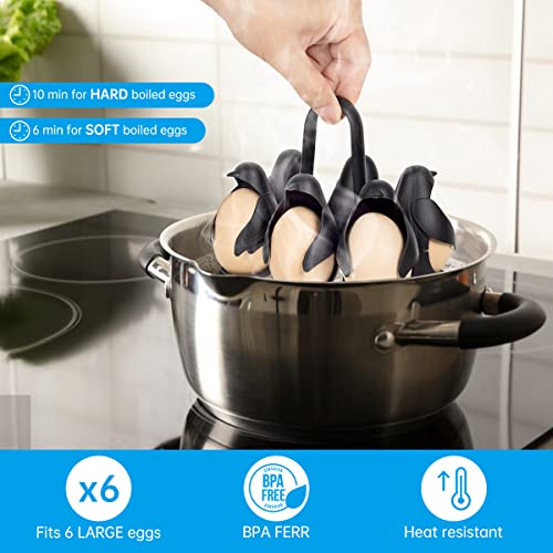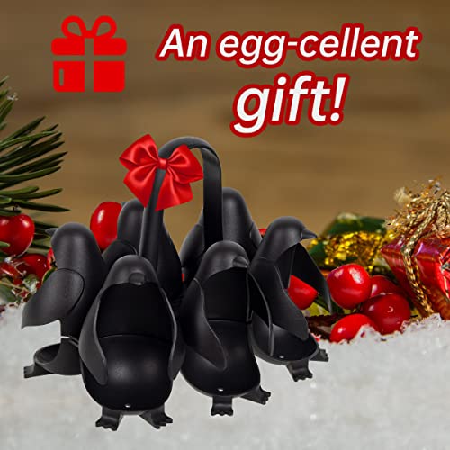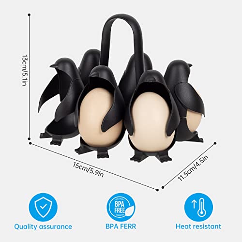 RONGLAIJIN - غلاية بيض بطريق اداة طهي مسلوقة مبتكرة متعددة الوظائف على شكل لطيف ادوات مطبخ صغيرة حامل البطريق للبيض المسلوق الصلب يحمل 6 بيضات لسهولة الطبخ والتخزين اليومي اسود