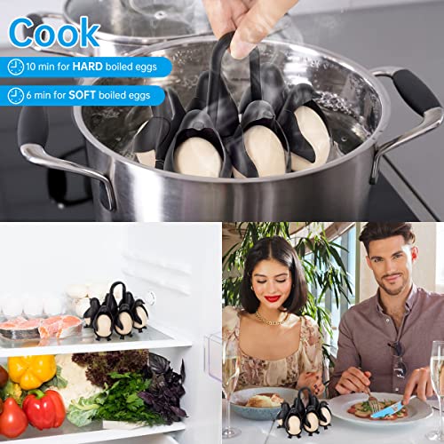 - 【منع الحروق】 حل غريب الأطوار لغلي البيض مع تقليل خطر التشقق. لا مزيد من تشقق البيض أو الأصابع المحترقة أو حرق نفسك من البخار. كما أنها طريقة لطيفة لتخزين البيض المسلوق في الثلاجة. ما عليك سوى رفع زعنفة البطريق لإزالتها والاستمتاع بها.