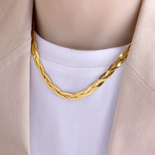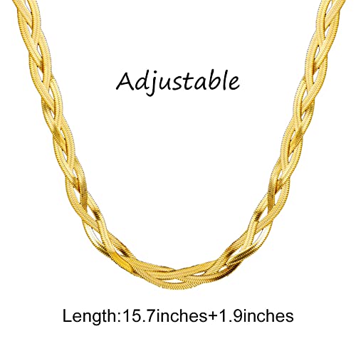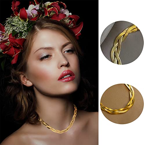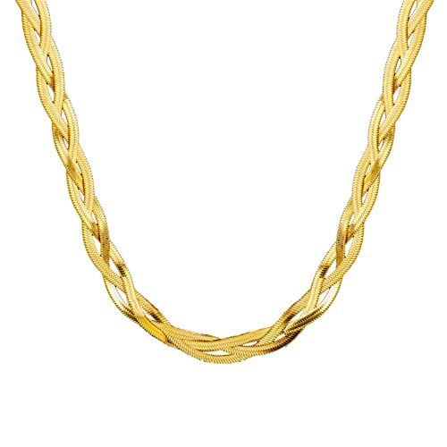 Ronglry - سلسلة بتصميم ثعبان متعرجة للنساء مجدولة ثلاثية الطبقات رفيعة مسطحة مصنوعة من الستيل لون ذهبي وتيتانيوم تقدم كهدية للبنات رونجلري تعليقة