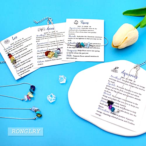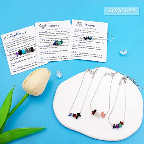 Ronglry - رونجلري سوار كريستال روحي علاجي من زودياك اساور حجر طبيعي شاكرا 12 كوكبة خرز للنساء مجوهرات ابراج هدية عيد الميلاد احجار بدون كريمة