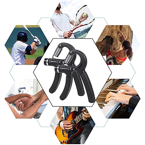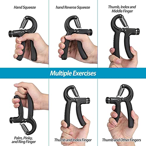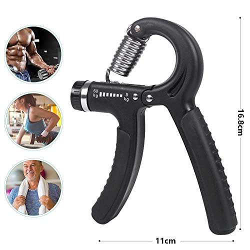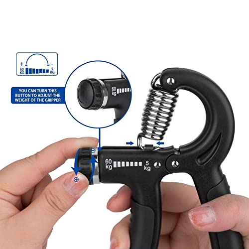 - [مقاومة قابلة للتعديل]: أداة تمارين اليد بمقاومة قابلة للتعديل من 5 إلى 60 كيلوجرام. إمكانية الحصول على مستويات مختلفة من المقاومة وفقًا لاحتياجاتك لزيادة قوة يدك. يعمل مقبض الساعد على تطوير مهارة الأصابع واليد والمعصم والساعد بشكل فعال عن طريق زيادة أو تقليل شد جهاز التدريب اليدوي، جهاز التدريب المثالي لأي مكان مثل المنزل والمكتب والسفر وما إلى ذلك.