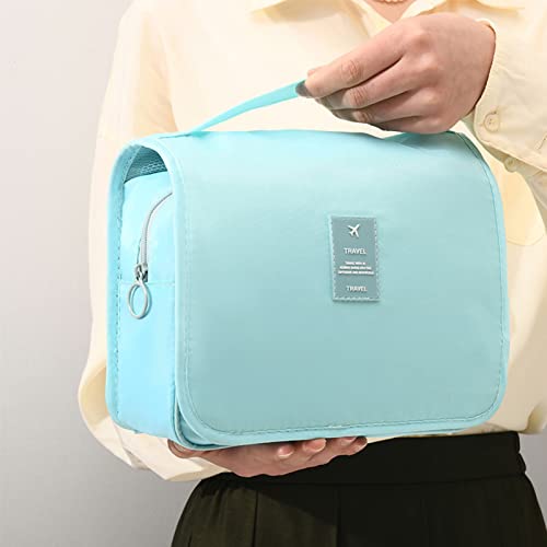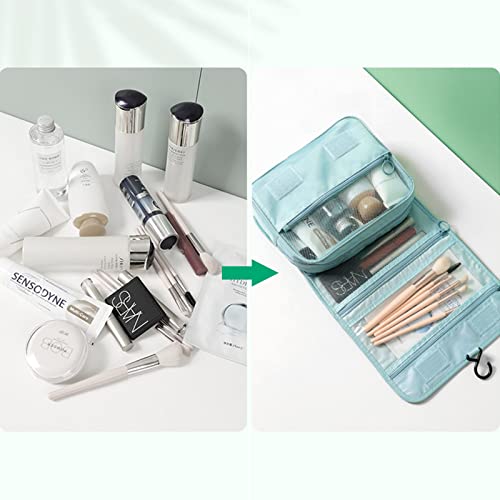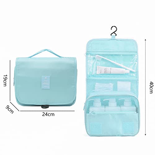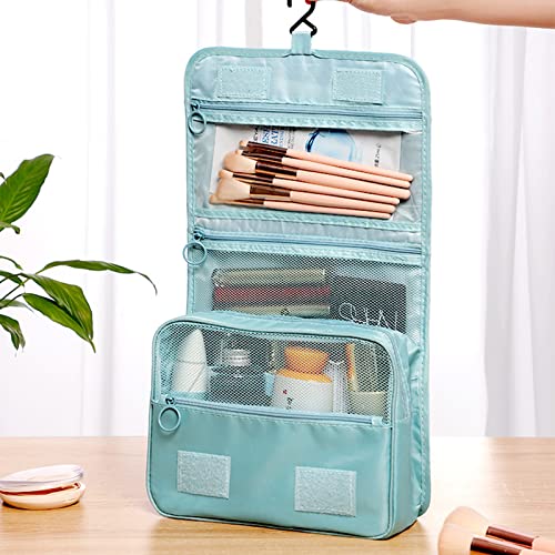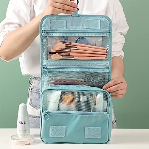 RONGYI - شنطة مستحضرات تجميل للسفر من رونجي، شنطة غسيل سفر للتعليق، شنطة معلقة بحجم صغير قابل للطي مزودة بـ 4 أقسام، شنطة أدوات الزينة والمكياج للنساء، أزرق، 1