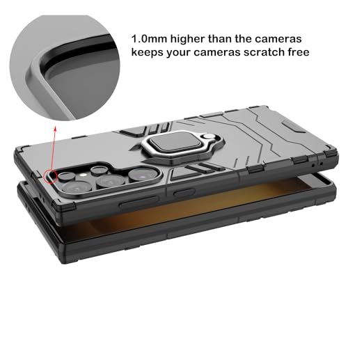 RonRun - جراب حماية مع حامل حلقي معدني للإصبع مقاوم للخدش والصدمات متوافق مع قاعدة تثبيت السيارة المغناطيسية لموبايل سامسونج جالاكسي S24 الترا من رون رن، أسود