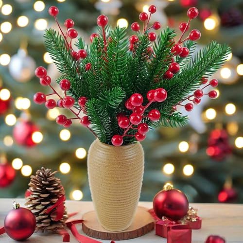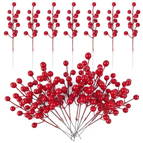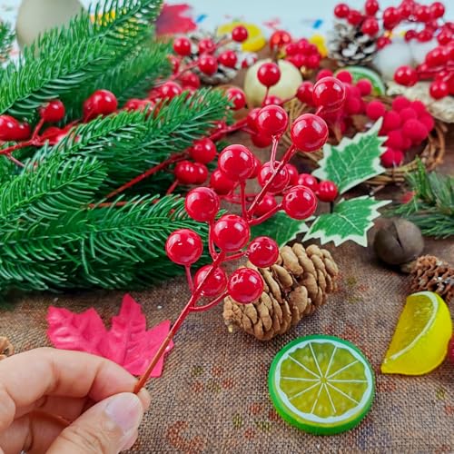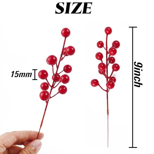 RONYOUNG - 32 قطعة من التوت الهولي الصناعي 9 انش للكريسماس والشتاء، سيقان التوت الاحمر الاصطناعية للكريسماس/زهور الشتاء الحرفية وديكور المنزل والعطلات