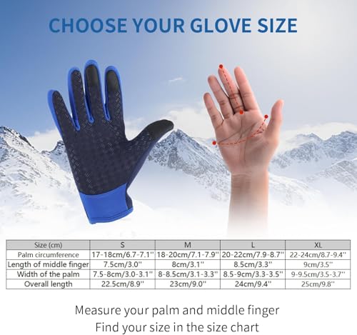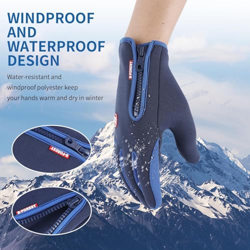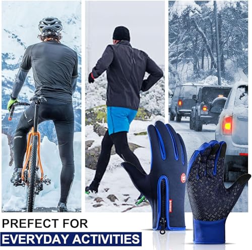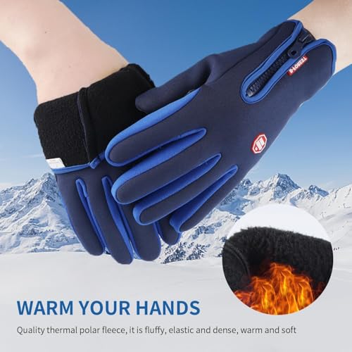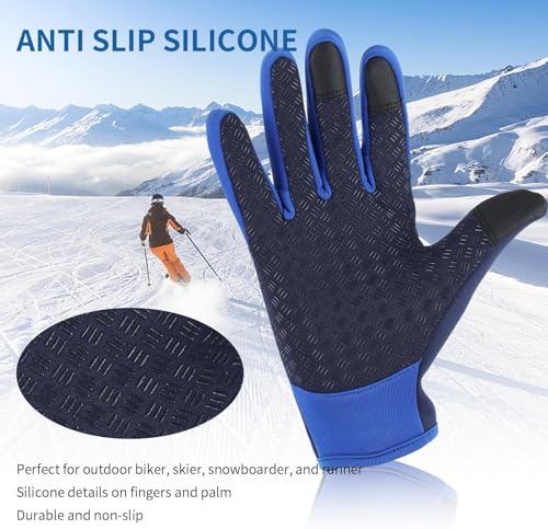 RooRuns - قفازات شتوية خفيفة الوزن بشاشة تعمل باللمس، قفازات ركوب الدراجات غير قابلة للانزلاق ومقاومة للماء من رورنز، لون أزرق، للبالغين من الجنسين