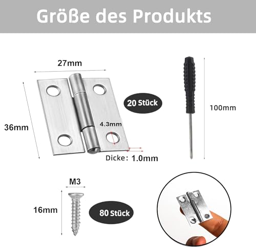 - ※【يمكنك الاختيار】: نحن نوفر 20 قطعة من المفصلات الفضية الصغيرة و80 قطعة من المسامير الصغيرة لتلبية احتياجاتك المختلفة، كما أنها مزودة بمفك، مما يجعل تركيب المفصلات الصغيرة لصناديق الخشب أكثر ملاءمة وسهولة لك.