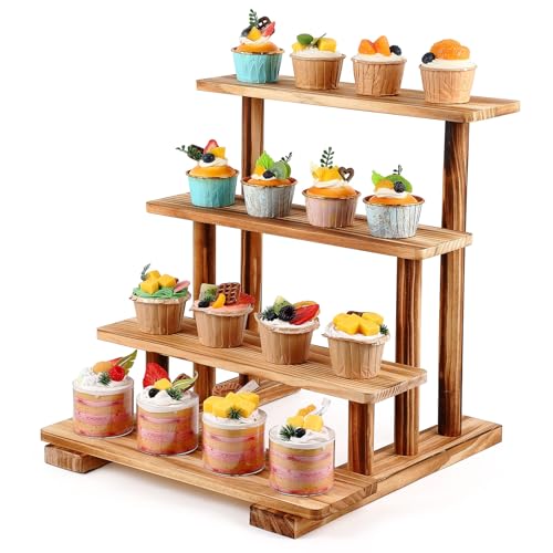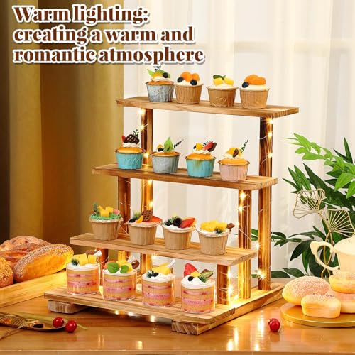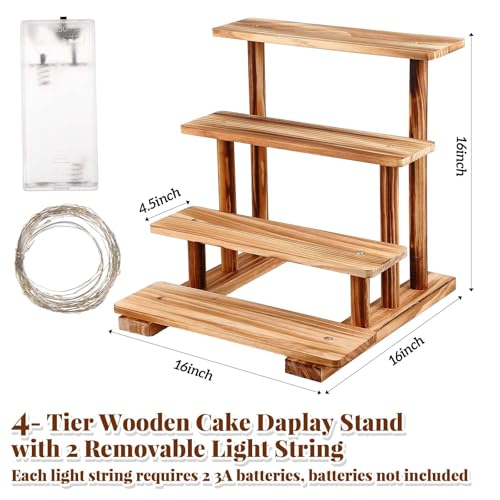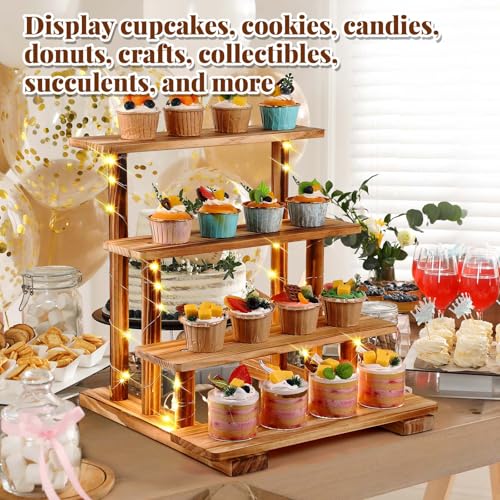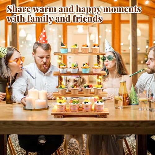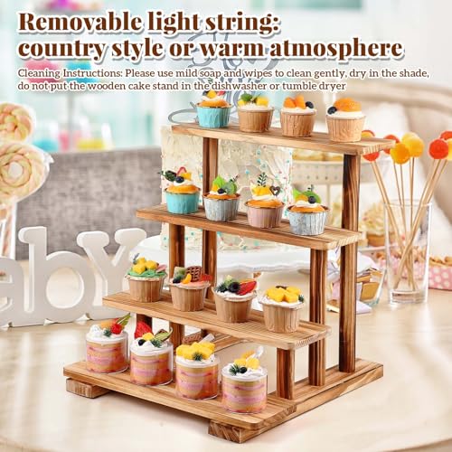 Roowest - روويست حامل كب كيك خشبي مع ضوء، حامل عرض الكب كيك من 4 طبقات، حامل كب كيك بنمط ريفي، حامل كيك للحفلات، حامل عرض خشبي للكوكيز والحلوى والدونات
