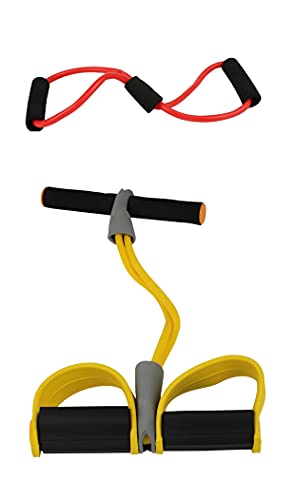 Generic - حبل لتمرين الصدر، أحمر، MF128-1-R مع حزام رياضي لتقوية البطن والذراعين، أصفر MF086-Y