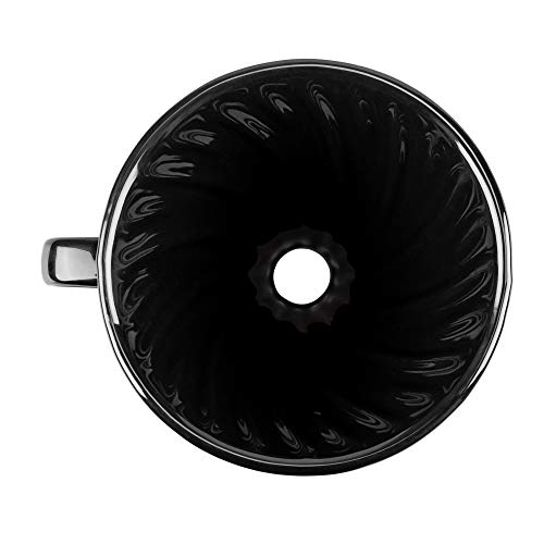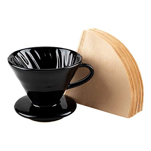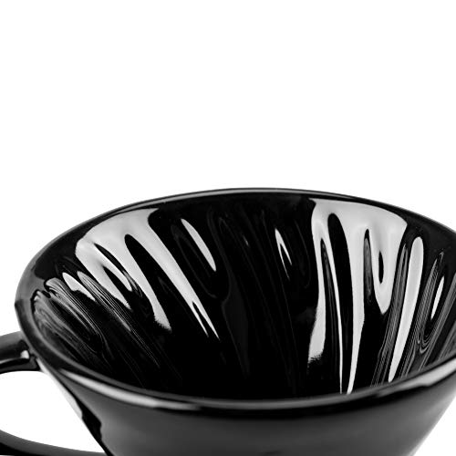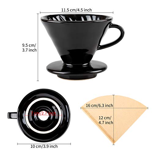 Roponan - منقط قهوة سيراميك V60 فلتر مخروطي بورسلين مع 80 ورقي للمنزل والمقهى والمطاعم اسود