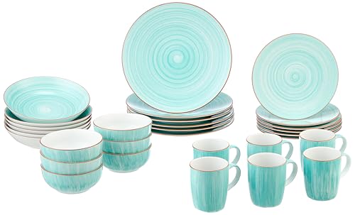 - طقم أدوات مائدة من البورسلين بلون أزرق فاتح بلون مهدئ
