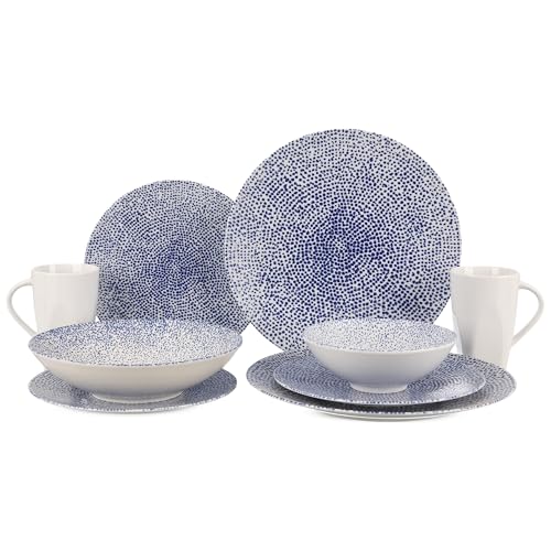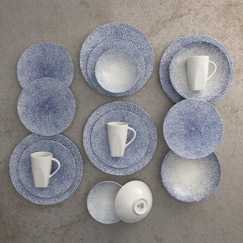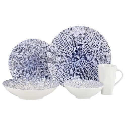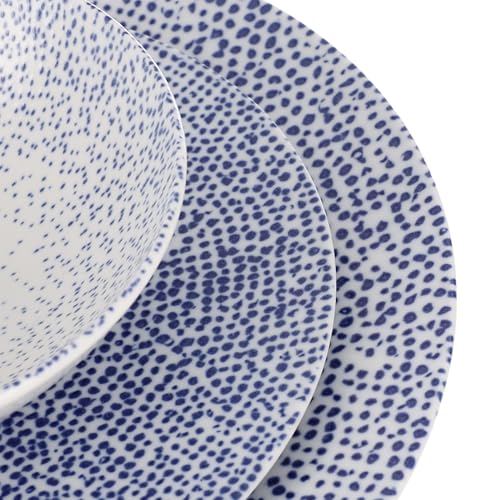 Generic - طقم عشاء من روزا، 30 قطعة لـ 6 اشخاص، بورسلين - ازرق منقط مع قاعدة بيضاء