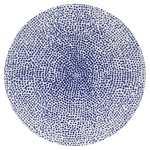 - تصميم فني: نمط منقط أزرق جميل يخلق تأثيرًا فريدًا على القاعدة البيضاء النقية، مما يضيف الأناقة إلى أي طاولة
