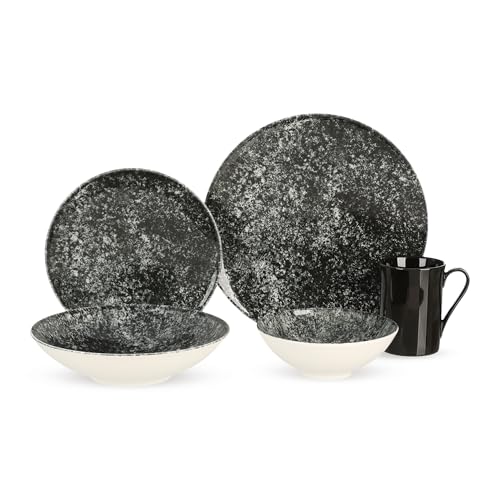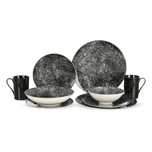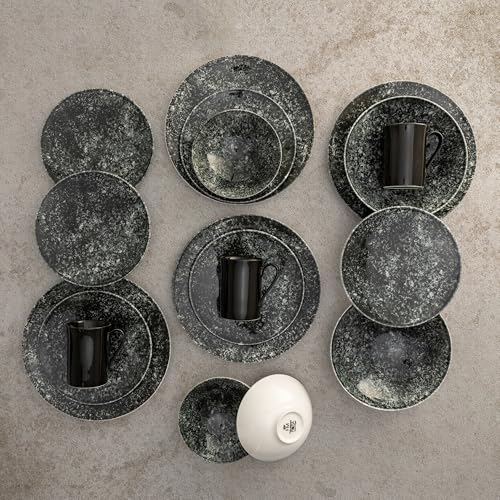 Generic - طقم عشاء من روزا، 30 قطعة لـ 6 اشخاص، بورسلين - اسود جالكسي مع نقاط بيضاء