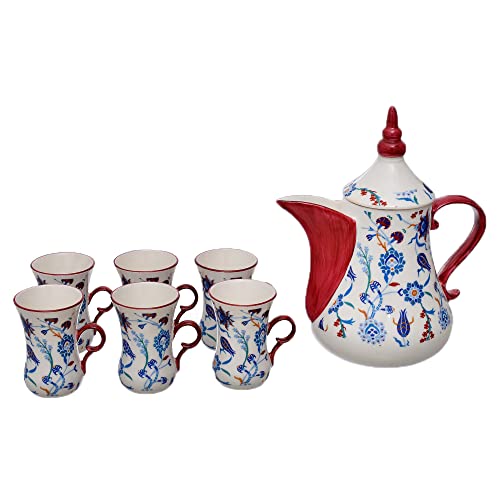 Rosa - طقم شاي بورسلين عالي الجودة من روزا اف ام ابريق بغطاء و6 اكواب 8 قطع - متعدد الالوان 008034