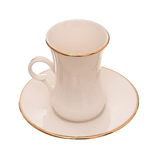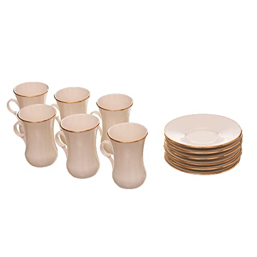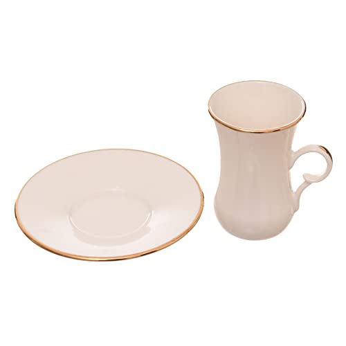 Rosa - طقم فناجين باطباق تركي بورسلين ذهبي عاجي مصنوع من مادة متينة ومناسب لللمنزل والمكتب روزا اف ام 12 قطعة 8968 010068 مصقول