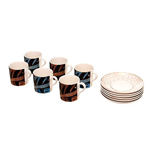 Rosa - طقم أكواب قهوة دورا من البورسلين مزين بنقوش فن الخط العربي (أزرق وأحمر)، مصنوع من مواد متينة، مناسب للمنزل والمكتب من روزا، FM 8968 012994
