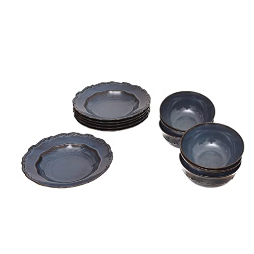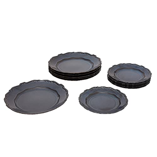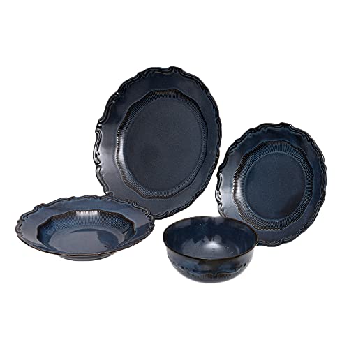 Rosa - طقم عشاء بورسلين ماسين من 24 قطعة مصنوع من مواد متينة وعالية الجودة للمنزل من روزا اف ام، لون ازرق غامق، موديل 8968 240144