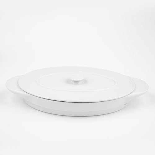 Rosa - كسرولة بيضاوية الشكل بغطاء ومقابض من روزا اف ام، مقاس L، أبيض