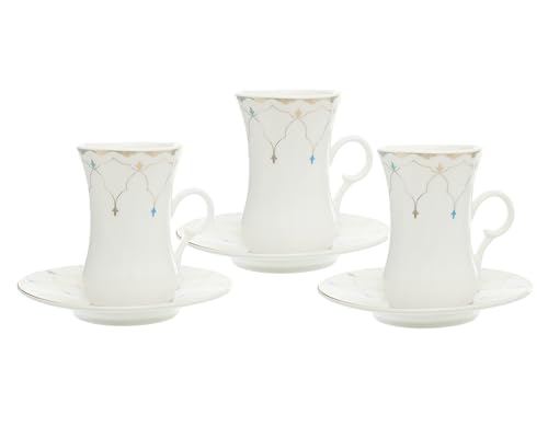 Rosa - أكواب شاي زينا استكانة مع أطباق من روزا اف ام طقم 6 قطع بورسلين متعدد الألوان
