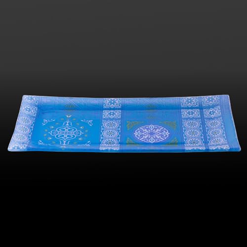 Rosa - طبق تقديم زجاج مستطيل الشكل من روزا مقاس 39.5 سم × 19.5 لون أزرق