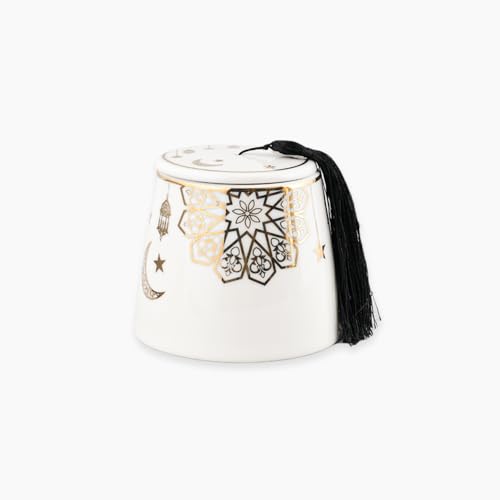 Rosa - وعاء بورسلين بتصميم طربوش كبير مزخرف ذهبي مع غطاء من روزا