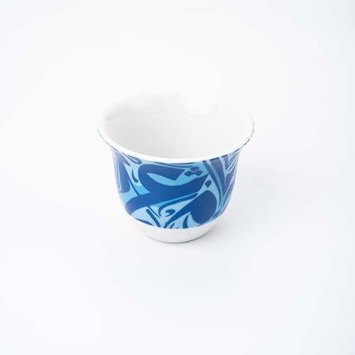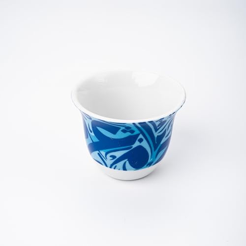 - أكواب قهوة عربية أنيقة بنقشات كوفية معقدة، مصنوعة من البورسلين الفاخر لتجربة راقية.