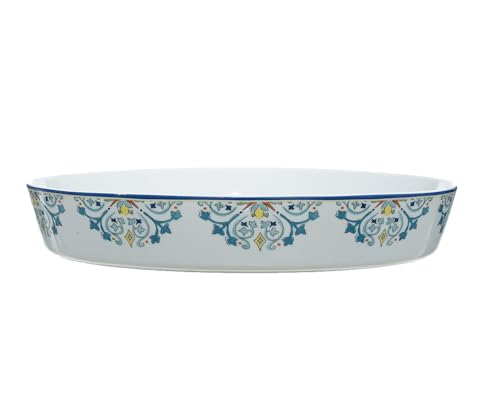 Rosa - روزا كسرولة خبز بيضاوية من البورسلين بتصميم ليمون صغير، مقاس L، لون ابيض