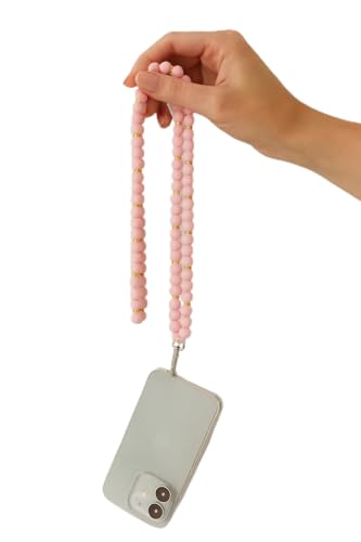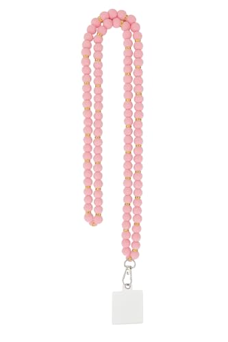 Generic - سلسلة موبايل طويلة بخرز وردي مع فواصل ذهبية، حزام هاتف قابل للارتداء حول الرقبة، حامل جوال بدون استخدام اليدين