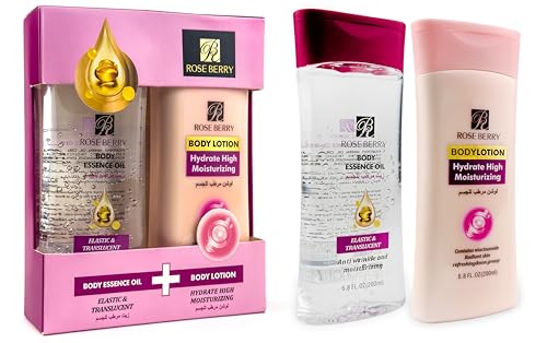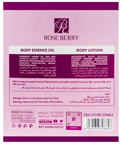 Generic - زيت ولوشن للجسم روز بيري 2 في 1، لوشن ترطيب عالي 200 ملليلتر وزيت شفاف مرن 200 ملليلتر، RB-ST0864