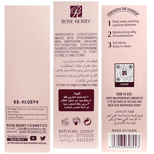 - اشراقة متألقة: يوفر هايلايتر سائل روز بيري تأثير فلتر مضيء خالي من العيوب للحصول على بشرة مشرقة بشكل طبيعي.