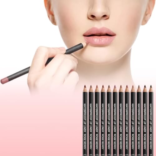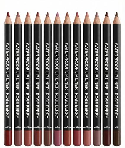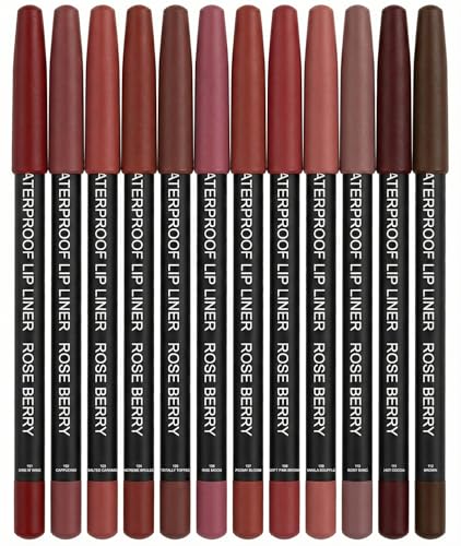 Generic - طقم قلم محدد للشفاه، قلم تحديد شفاه مقاوم للماء، طقم مكون من 12 قطعة، موديل - RBL15005 من روز بيري