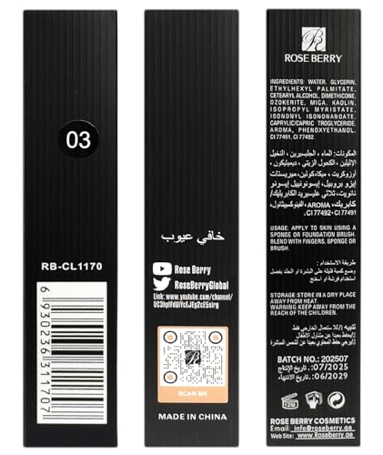 Generic - كونسيلر سائل RB-CL1170 متعدد الاستخدامات بتغطية تريجية وتدوم طويلا من روز بيري، 5 مل (03)