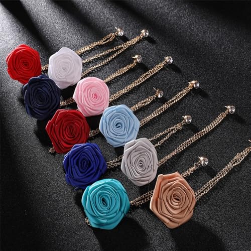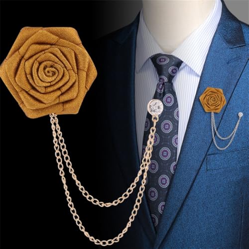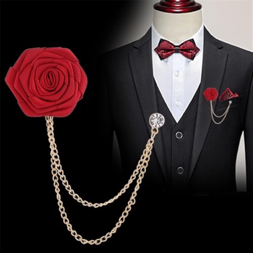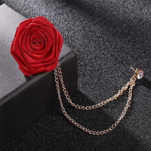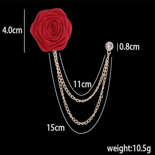 TengRiah - دبوس بروش على شكل وردة، بروش بدلة الزفاف مصنوع يدويا، للعريس وحفلات الزفاف، بروش سلسلة بشراشيب، اكسسوارات بدلة الرجال
