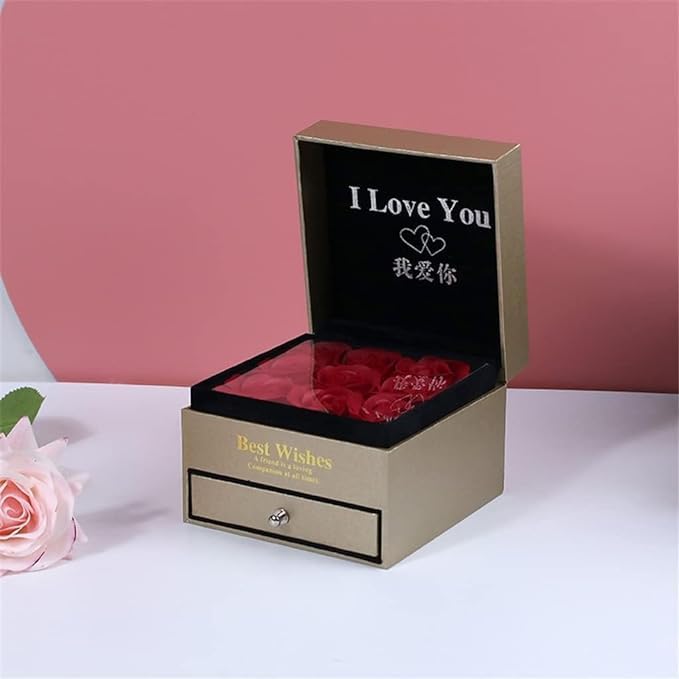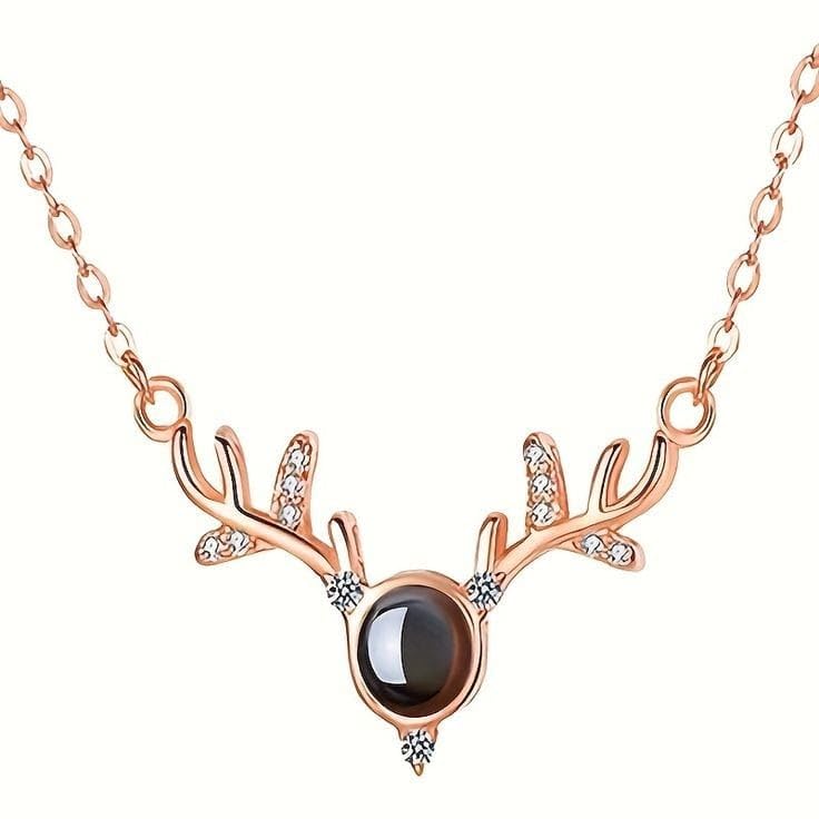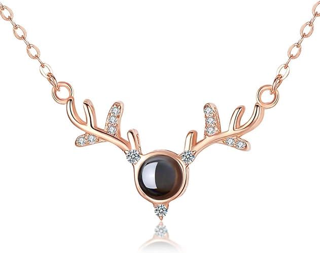 Generic - قلادة بحبك ب100 لغه على شكل غزاله روز جولدىمع مع صندوق هدايا بتصميم ورد حقيقي محفوظ