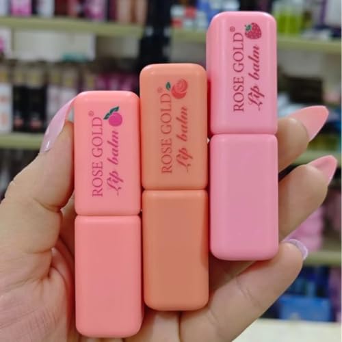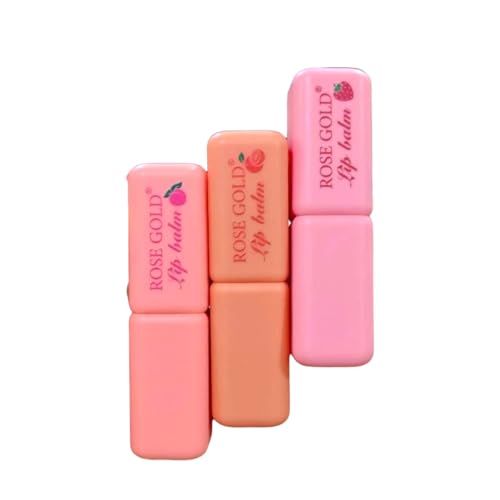 Generic - مرطب شفاه بلمعة ذهبية وردية، تركيبة فواكه طويلة الأمد، مجموعة 3 قطع