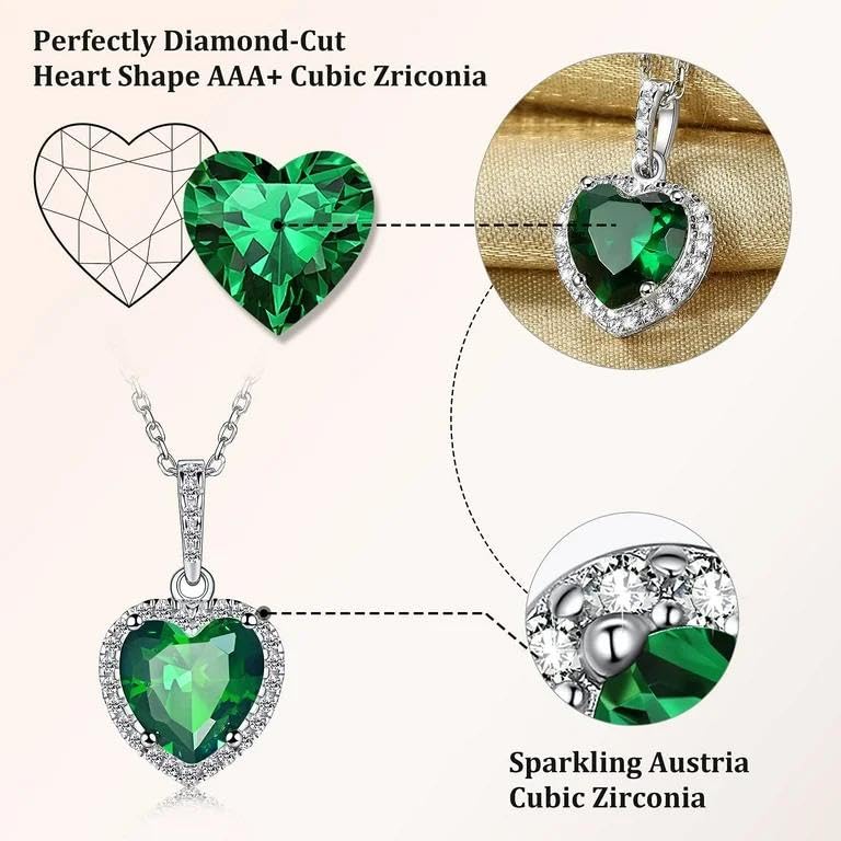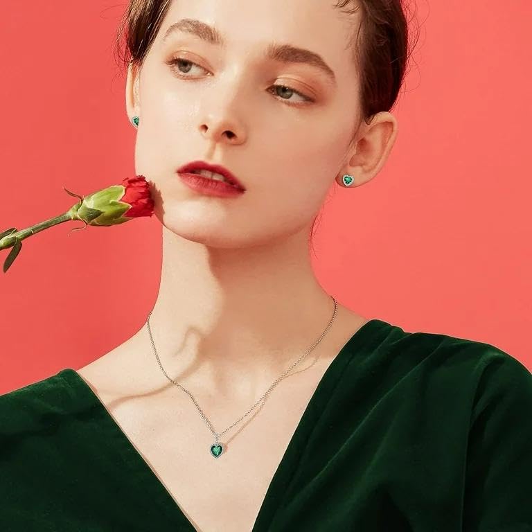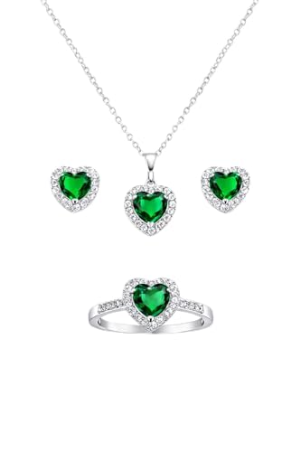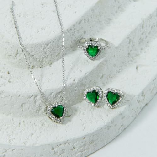 Generic - طقم مجوهرات قلب وردي، قلادة وأقراط وخاتم، فضي مرصعة بالكريستال، تصميم رومانسي